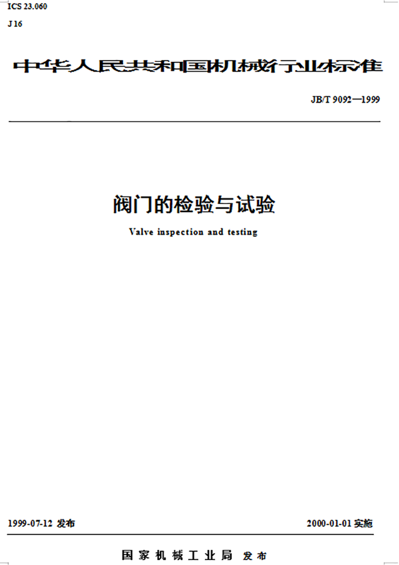 JB T 9092-1999 阀门的检验与试验